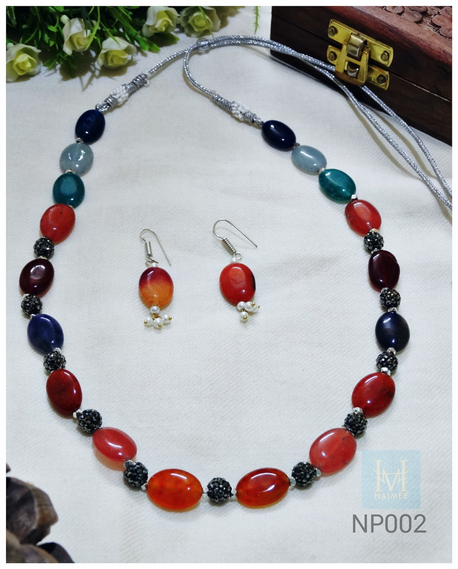 Be the first to review “Luxurious Multicolor Monalisa Stone Necklace Set with CZ Encrusted Balls”