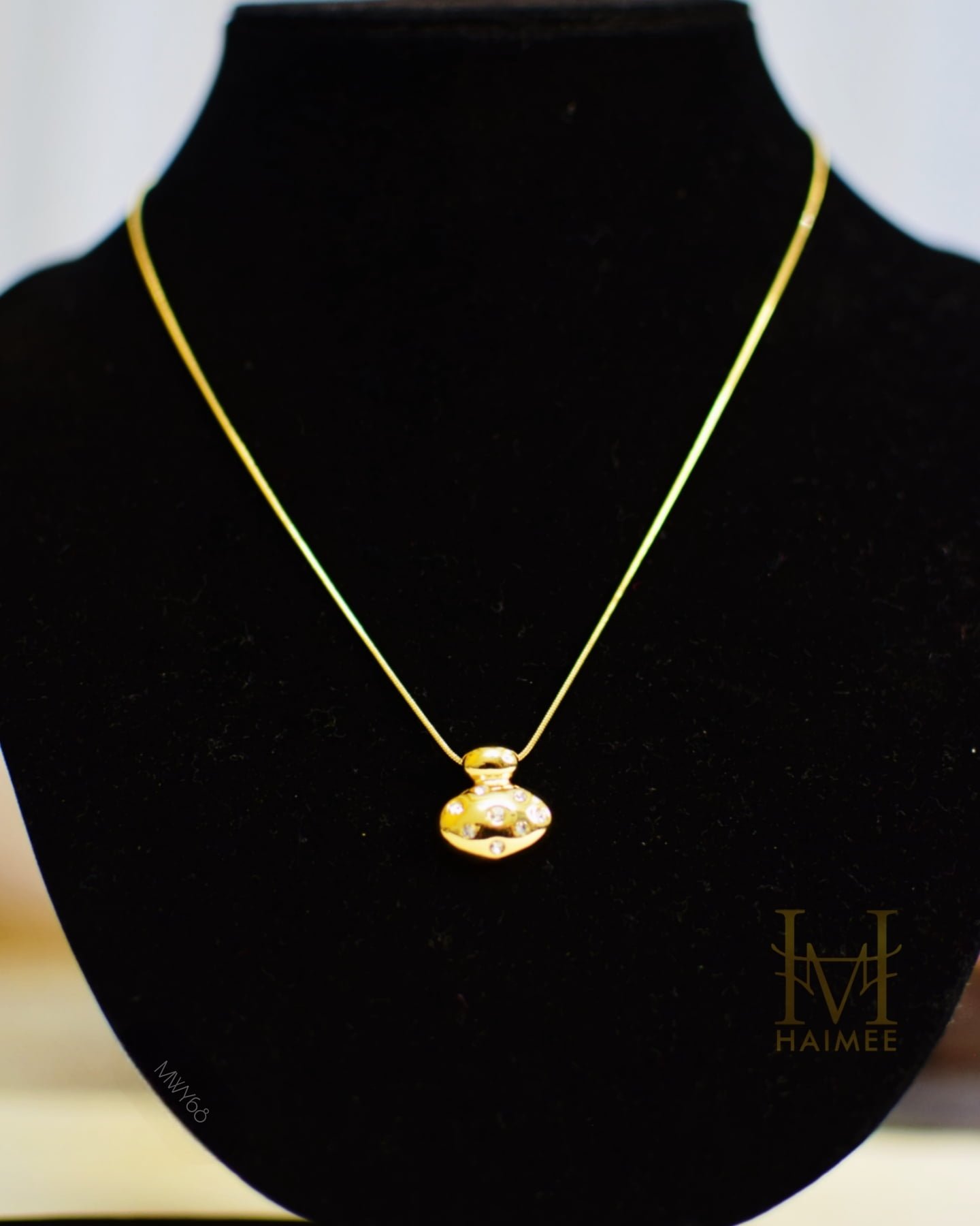 - Sculpted Pendant Design: The pendant’s smooth curves and shimmering crystal-like accents exude sophistication, making it a true statement piece.