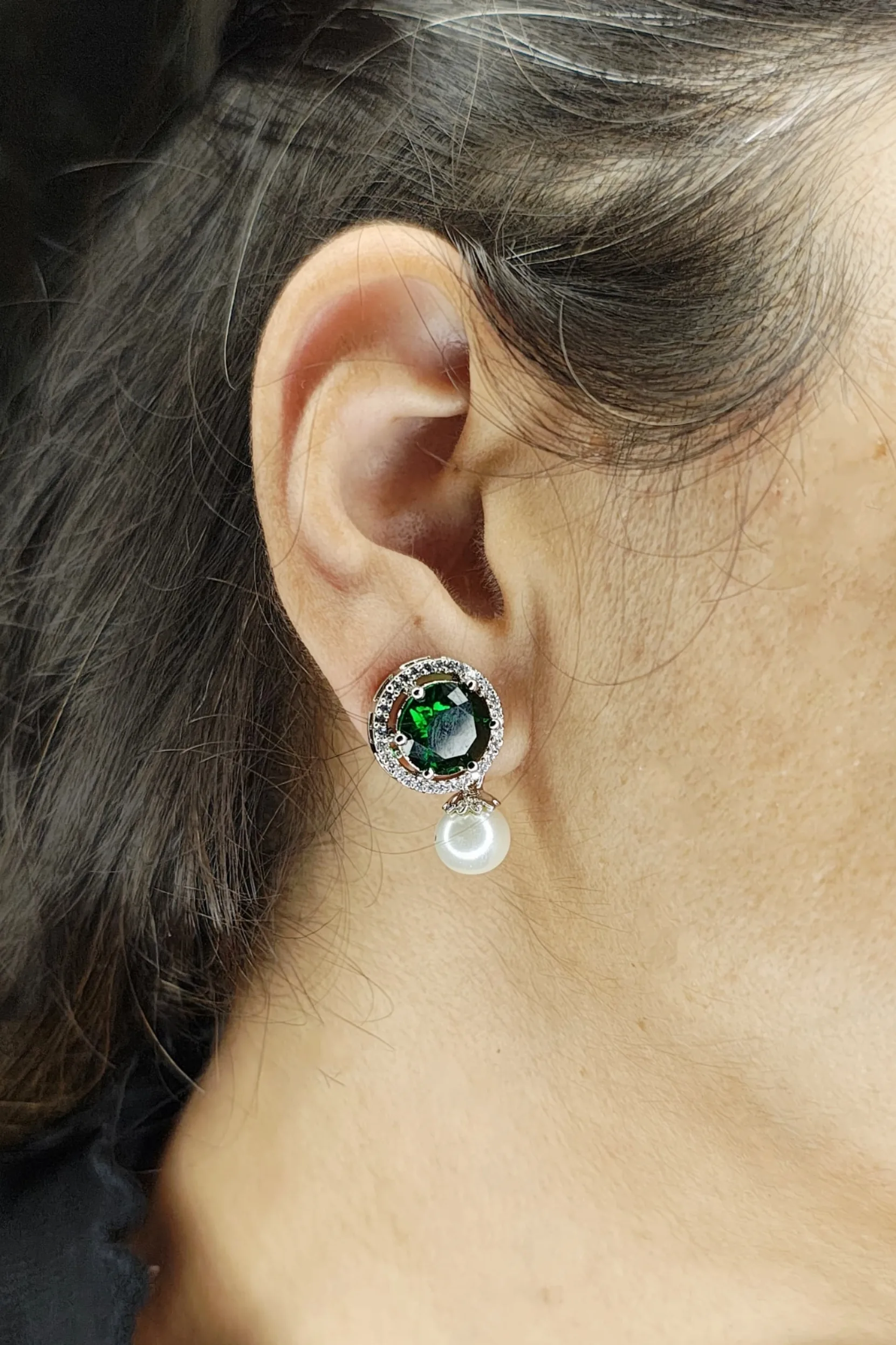 Be the first to review “Statement Hydro Stone Stud Earrings with Pearl Drop”